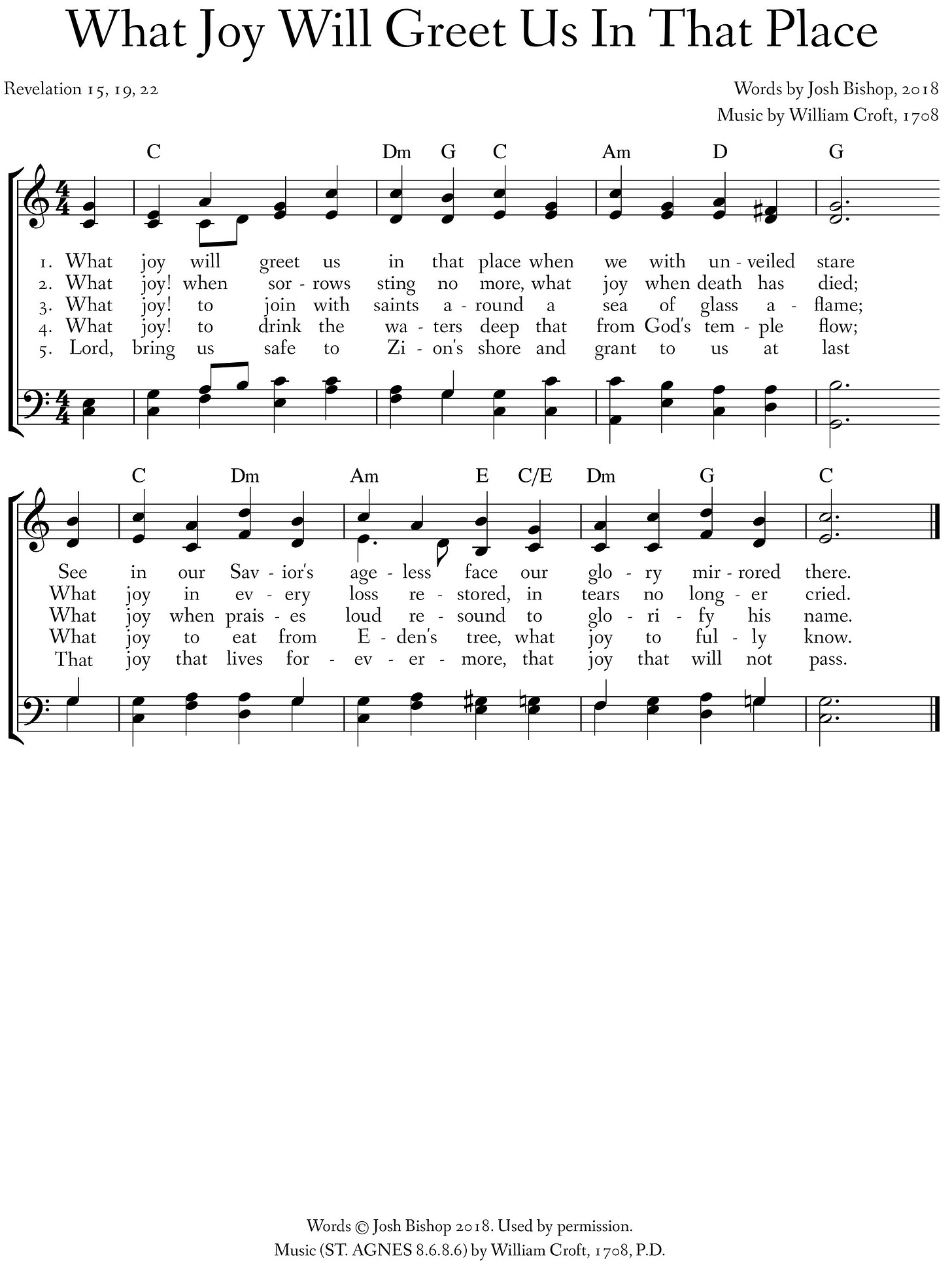 This is great. I can’t help, though, but hear it in my head to the Kingsfold tune (I heard the voice of Jesus say) instead of St. Agnes.